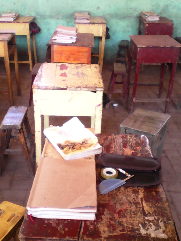 最舒服的是靠墙一排的同学。在上课他们可以靠着墙上听课,炎热天气他们打开窗户成了避暑山庄,再加上墙的降温无疑是风水宝地。