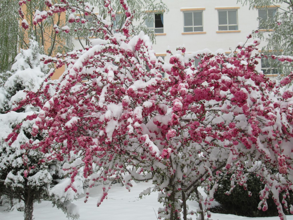 从小到大,我虽然看见过无数次的雪,也看见无数次的花,但是我从来没有看见过雪后的花。现在,已经是四月了,可是今天就下了一场雪,雪后的花儿分外美丽,还添了几分神秘。