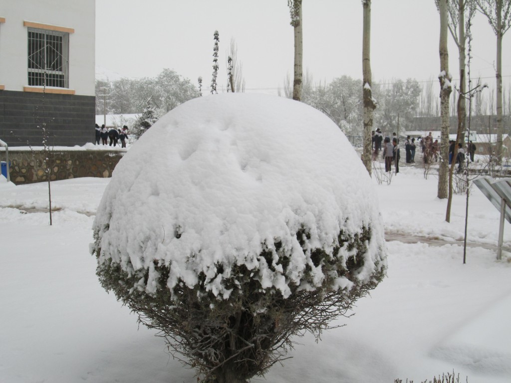 早上起来空气很新鲜,出来后发现大地银装素裹,雪大概有十厘米厚,走在地上脚发出咯吱咯吱的响声。我们小心地走在路上。同学们都兴奋的看着这一切。最美丽的地方要数花园了,花园里的花披上了一层薄薄的雪,显得更美丽,周围的杨柳轻轻地摆动着纤细的枝条,树上的雪就落了下来,纷纷扬扬的如粉,如沙,很美!