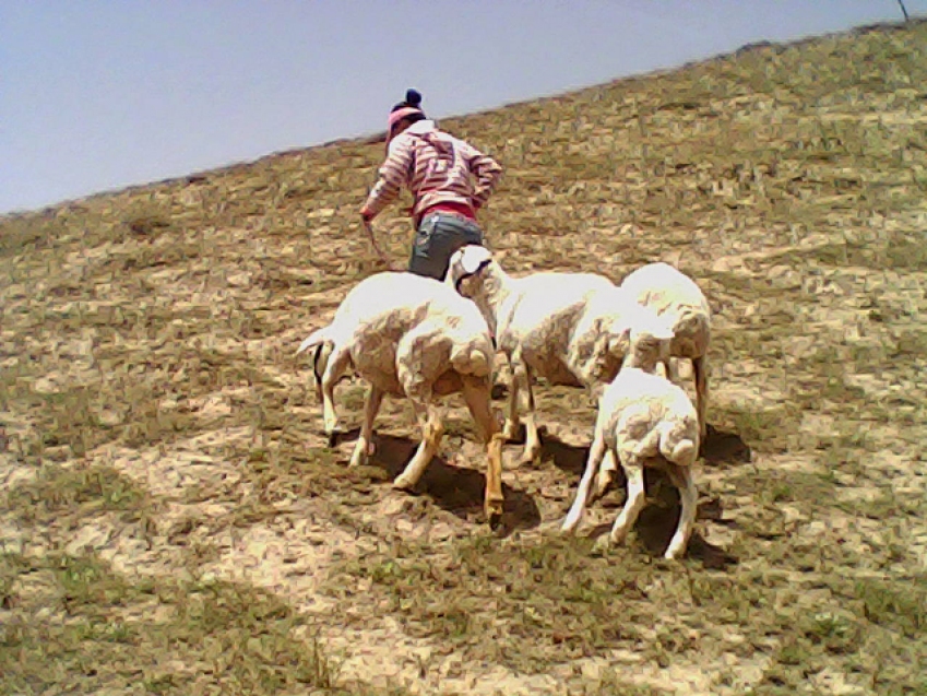 在我们北山里每家养得羊都不是太多,就有那么五六个吧!可是羊还得放。他么也特别听话,只要有人在的时候他们就不乱跑,人待在哪里,它们就在哪里吃草,当天气特别热的时候,它们就会很多只扎在一起,待等天气凉的时候它们就会又分开去吃草。有时候看见天发雨或是天变阴,我们就在离家不远的小山坡上去放,因为那样会在天下雨或特别冷的时候容易回家。