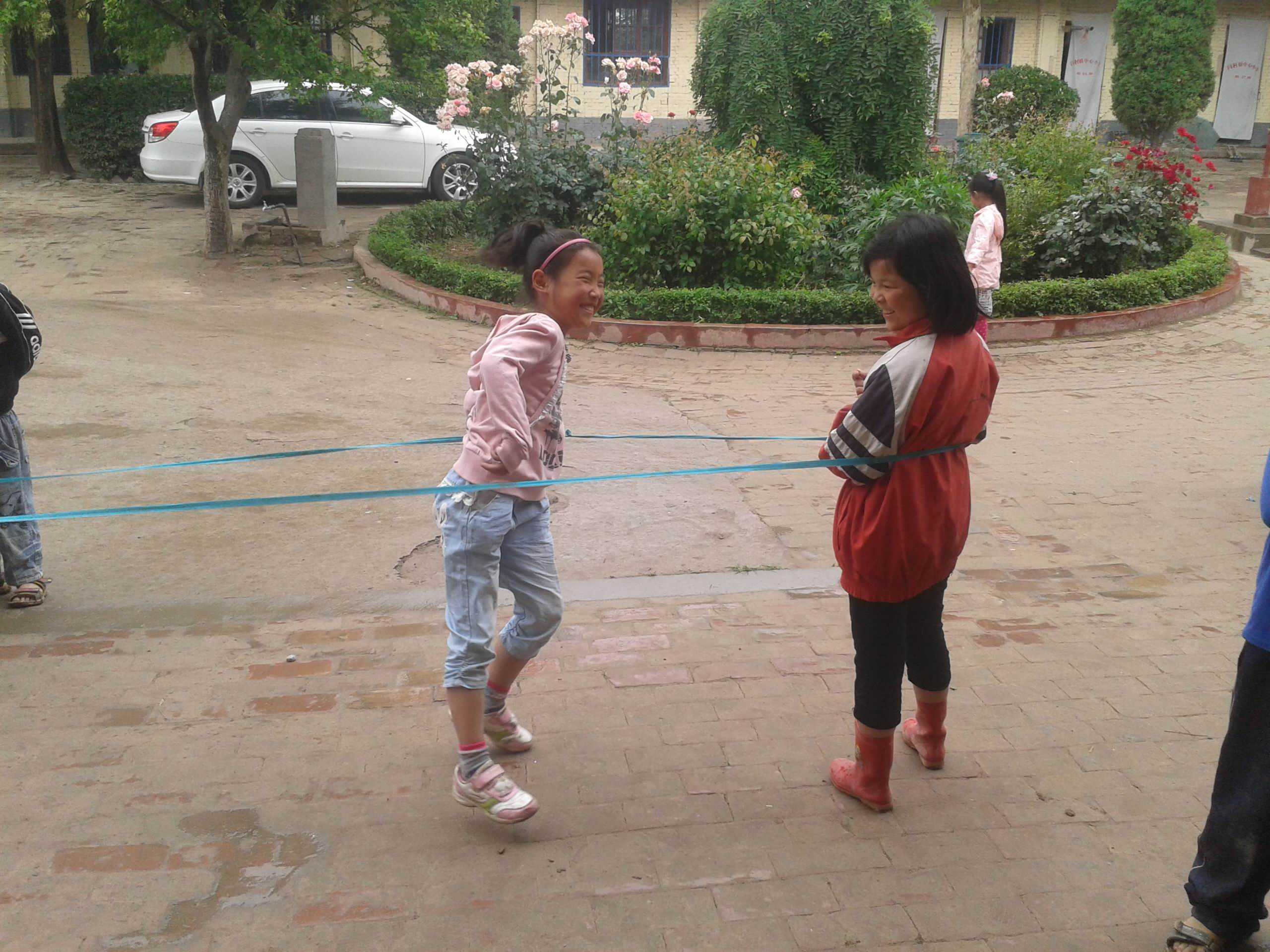 在操场,下课铃声一响,大家嘟高高兴兴无忧无虑的玩着,跳皮筋的,跳绳的,打沙包的,打乒乓球的,打篮球的。大大小小的同学在不大的操场上玩得非常快乐。