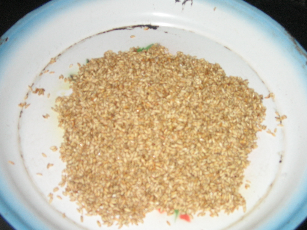 首先我们将莜麦里面的杂物捡掉,像柴和"穿衣服"的莜麦,以及土快等,我们不可能将杂物一起吞掉,所以我们必须先将它们捡掉。