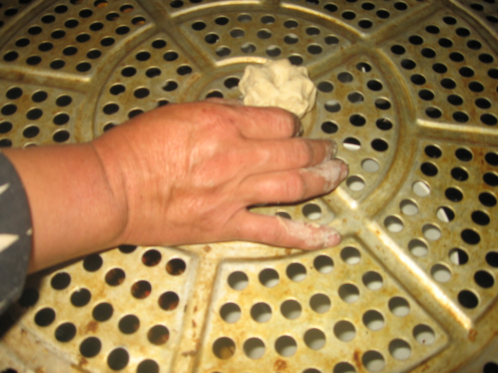 下面我们就开始入锅蒸蒸熟之后我们就在原先留下的小窝中到满我们通常吃的清油,要用棉花搓个灯丝,插在清油窝中。很简单吧!