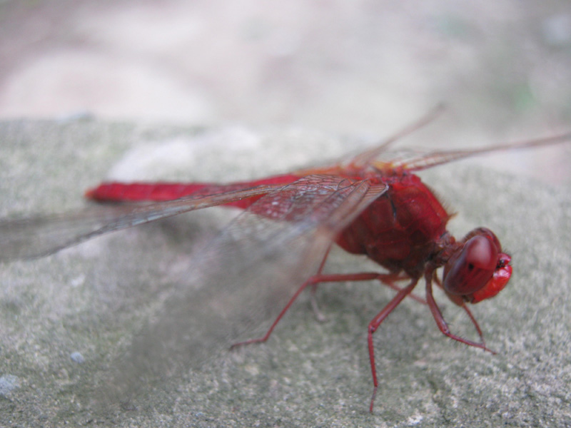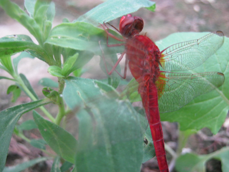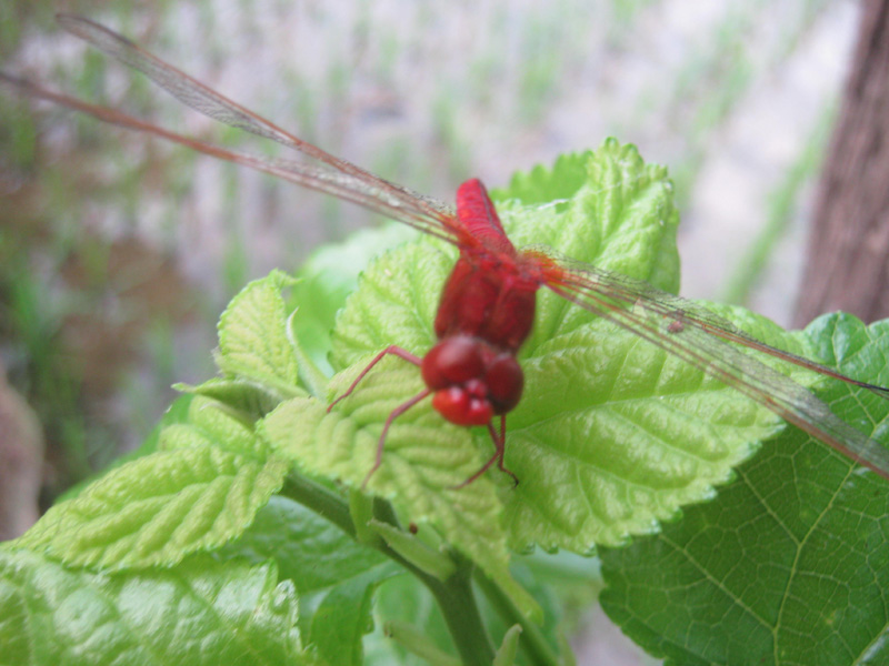 我蹑手蹑脚地走到秧苗旁的田垄上,一伸手,我捉到了,捉到了这个美丽的小精灵,薄薄的羽翼,两只大大的眼睛,软软的身躯,近距离观察,最让我记忆深刻的就是那连接身躯羽翼根部的丝丝红色脉络,不同于其他特别处之一