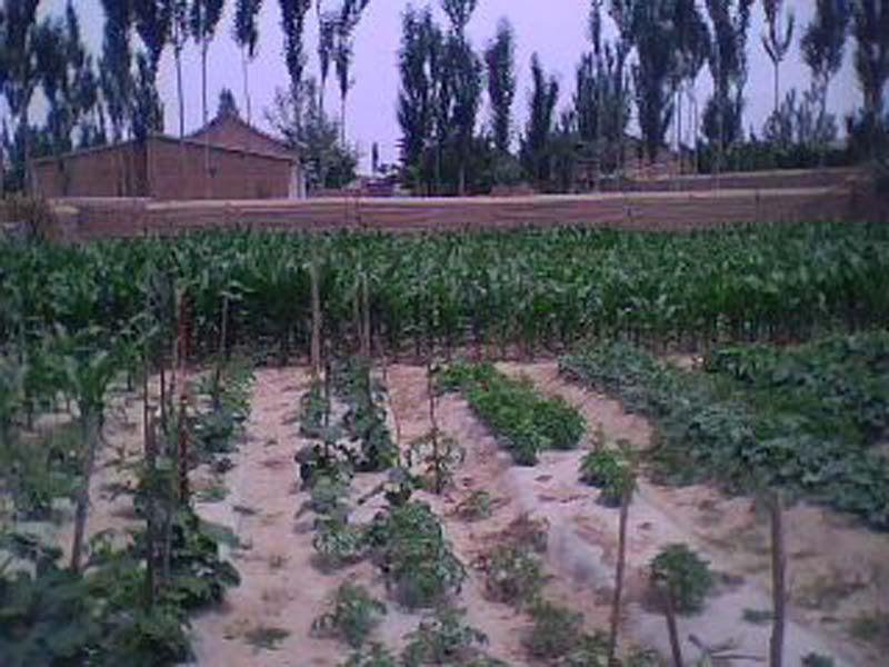 这是一片庄园,田里种植的有玉米和瓜果等,这时节正是花开叶盛时期,所有的花已绽放。其实环保离我们并不远,只要全世界的人都在沙漠上种一棵树,培养三、四年后那么世界上的沙漠很快减少面积。沙漠并不可怕,可怕的是人心。虽然有困难,如果我们全球团结共建绿色家园那是很容易的。