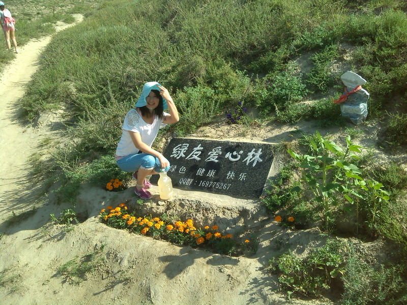 第二站上有一个大牌子,上面写着绿友爱心林。在牌子后面的山脊上,零零散散的长着几棵小树,这就是第二站了。