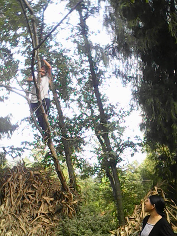 说到这里,三娃(我妹妹,排老三)已经爬上了树。她选了几处好落脚的地方,就开始摘核桃。把离的近的摘了,离得远的呢?却摘不到了啊,怎么办,这时妈妈也来帮忙了,妈妈递给了三娃一根长长的竹棒。告诫三娃要小心一点,摘不到就算了,别把自己给弄伤了,要吃核桃 ,妈妈给你买。