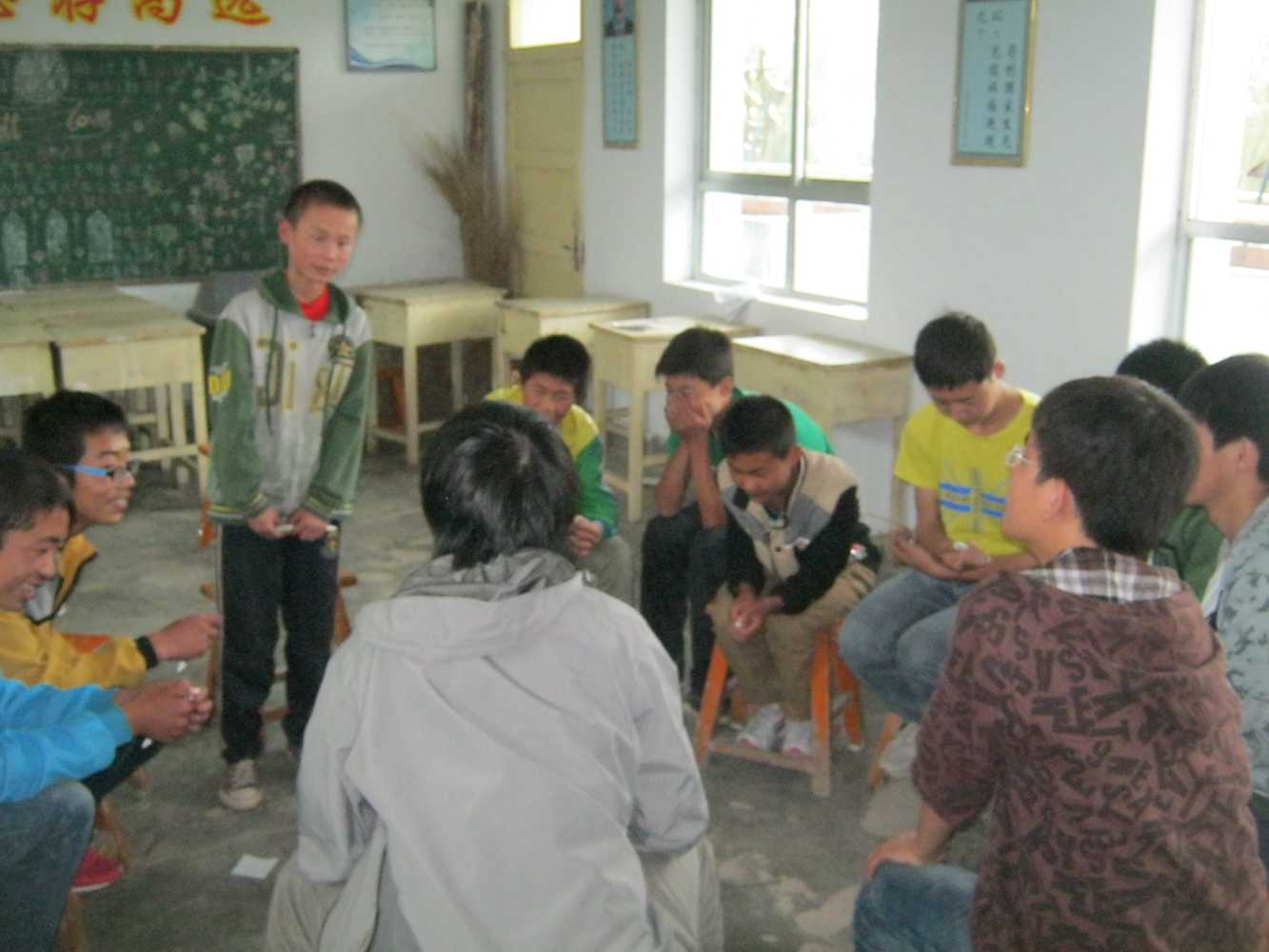 大约9.30左右花莲的老师和哥哥姐姐来了。刚开始老师把同学们集中到了四楼的多媒体教室里介绍了这些老师和哥哥姐姐们。介绍完后,校长教了我们几个姿势,分别是“自信”“坚持”“跨越”。然后就将我们分成了两个教室,一个是多媒体,一个是我们九一班。带领我们的老师是恩中老师,一个高高瘦瘦又有点儿幽默的男老师。恩钟老师和我们玩了几个小游戏,之后就把我们分成了三个小组,我是由婉茹老师带领的小C组,分好组后正好12.00多了,我们就解散休息。