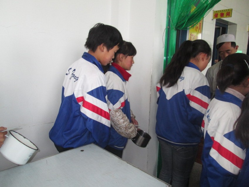 两盆白花花、香喷喷的米饭上冒着迫不及待的热气,等着排着有秩序的队伍前来品尝它,队伍里不乏有饿的前胸贴后背的同学,但他们还是很有序地站在队伍里。饭缸里盛上了香喷喷的饭菜,我们都很小心,担心打好的饭撒了,毕竟作为农村子女,或许更能体会到“谁知盘中餐,粒粒皆辛苦”的含义吧!