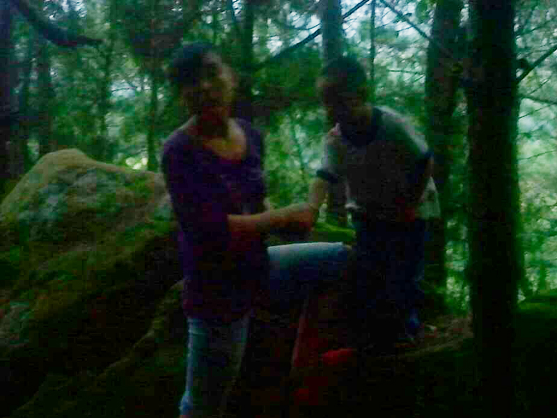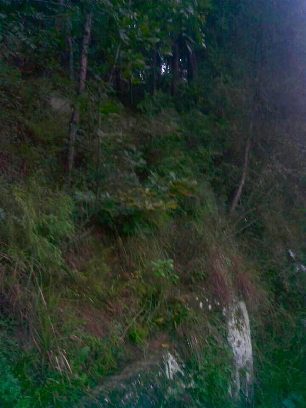 一踏上这小路,倒有点不适应,站起身望了望山脚大路,有几年都没有走过这条小路,自从家乡修了公路之后,人们就习惯走大路了。小路长满了草,上了几级石梯,就是一片郁郁葱葱的树林,其中座落着许多的大石头。小时候,放学之后就会和个几个小伙伴在上面玩,那个石头真的好大,几个人围着,或爬到石头上去捉迷藏,有一次,这不小心在石头上把裤子磨破了,回家还挨了骂。