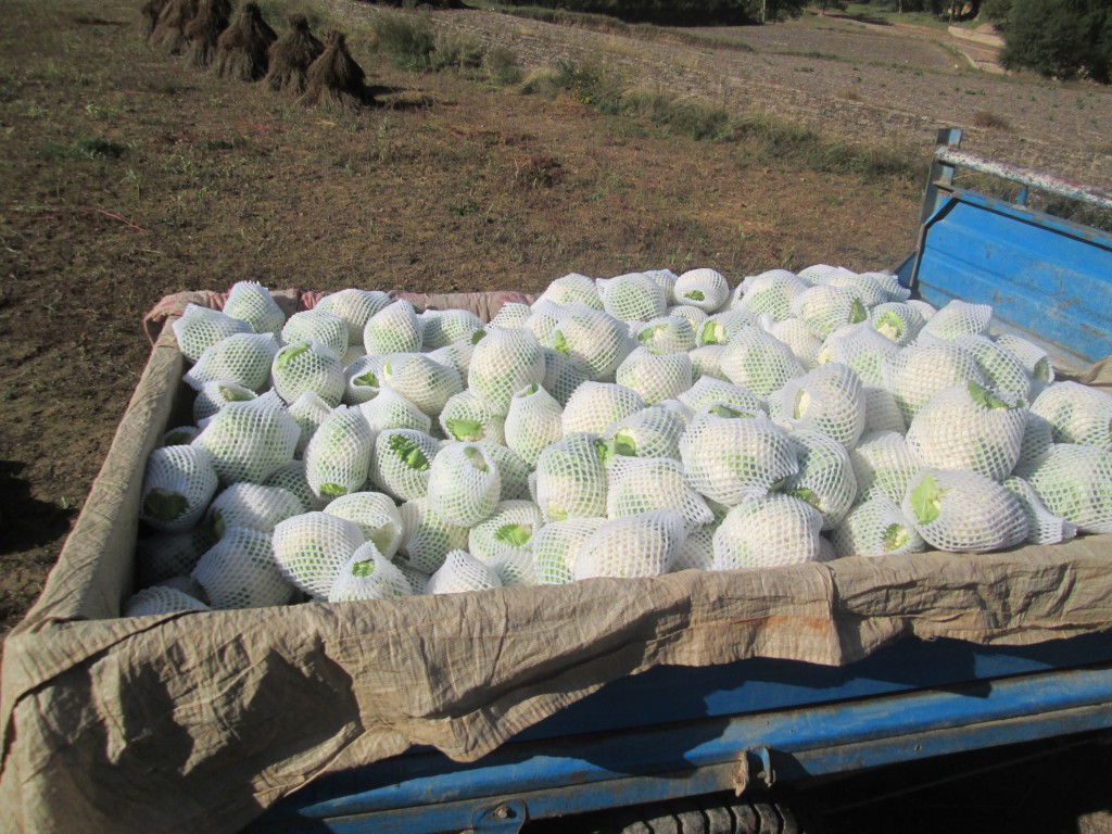 早晨天还没亮就要起床了,浓浓的雾气仿佛给山披上了一件纱做成的衣服。我们穿上雨衣,雨裤,带上塑胶做成的手套行头就算是准备齐全了。大路上农用机动车的声音此起彼伏使小山村的清晨变得热闹起来。菜地里绿葱葱的一片,菜叶子上还有小水珠,看起来很漂亮。