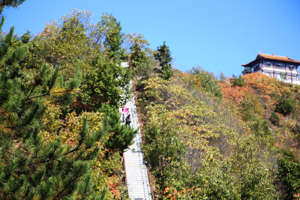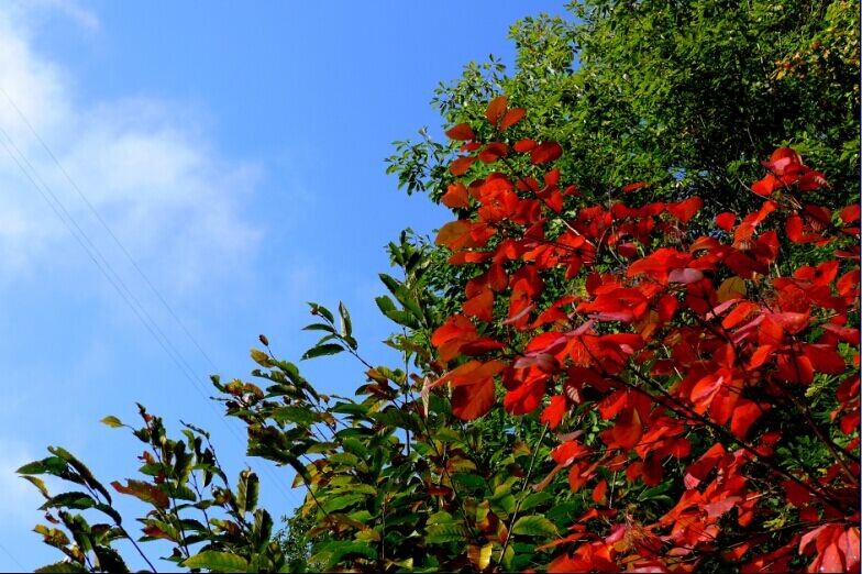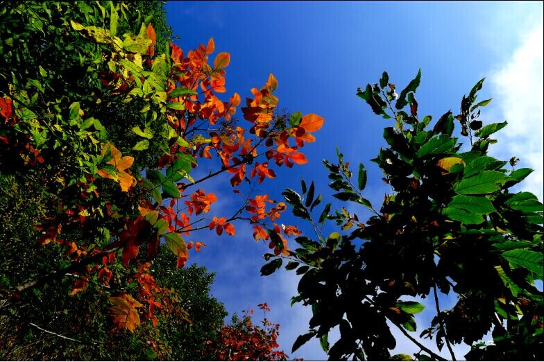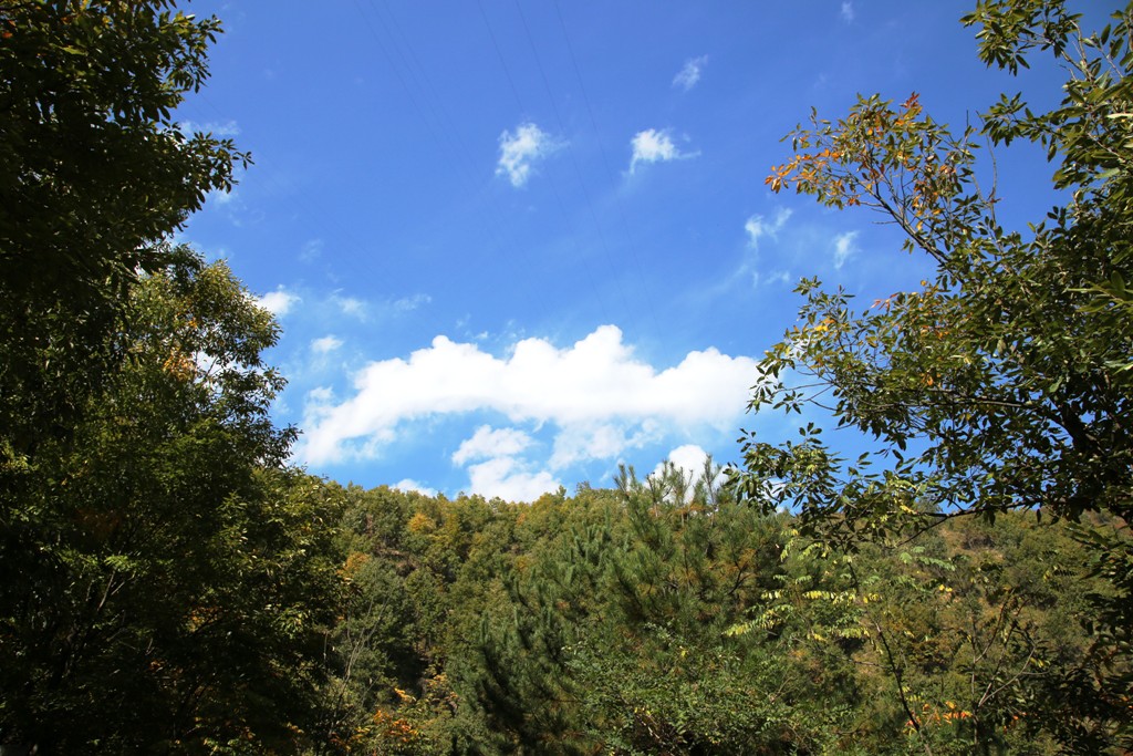 湛蓝的天空镶嵌在山的边缘,五彩的树木妆点着大山,云雾飘绕在山的半腰,为山添了一丝丝神秘感,秋也是这般神秘,吸引着人们。