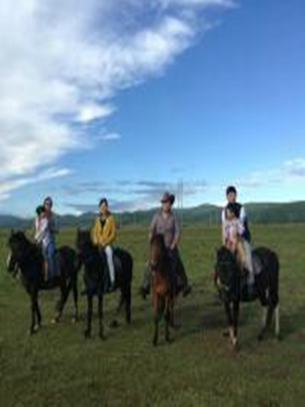 有人说来到草原,如果没有骑一骑马,那就不算来过。在爸爸的交涉下,一个牧民同意护卫我骑一下马,他把我抱上马背,开始马走的很慢,我一点都不害怕,只觉得好玩。忽然,他把手中的鞭子怡挥,马儿便腾空而起,飞奔起来,我的心紧张极了!用手使劲地抓住马鞍,幸亏有牧民的护卫,要不然我非被马甩下来不可。奔腾.....奔腾!咔嚓一旁的爸爸用相机给我拍下了这张珍贵的照片。