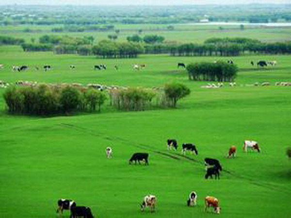 汽车在山间穿行,经过四五个小时我们就到达了目的地——四川红原草原。呀!一碧千里,到处翠色欲流,蔚蓝的天空,碧绿的小草,碧绿山丘,碧绿的树。置身其中,连我自己也是绿的了。绿草丛中有点点白花涌现点缀着"绿毯"。微风拂过,我才看清那是群羊在吃草。我情不自禁地吟涌到:"天苍苍,野茫茫,风吹草低见牛羊。"