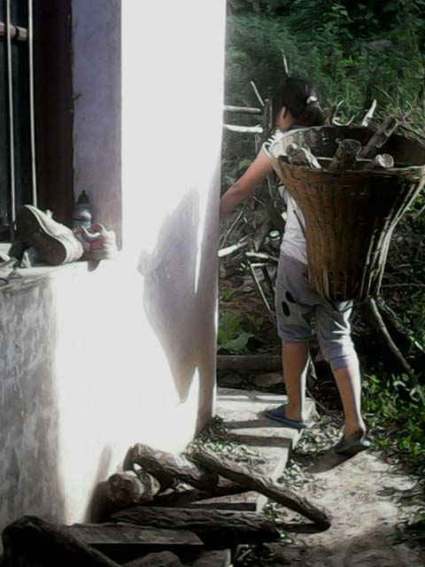 写完作业听厨房有动静不免有些害怕,悄悄的一看原来是妈妈,原理啊妈妈担心下雨将干木棒背向厨房,看着妈妈劳累了一天的身影我再也不能无动于衷了,我也抄起了背篼和妈妈一同前进。 阳光挥洒倒身上,一切都是那么美好与和谐。