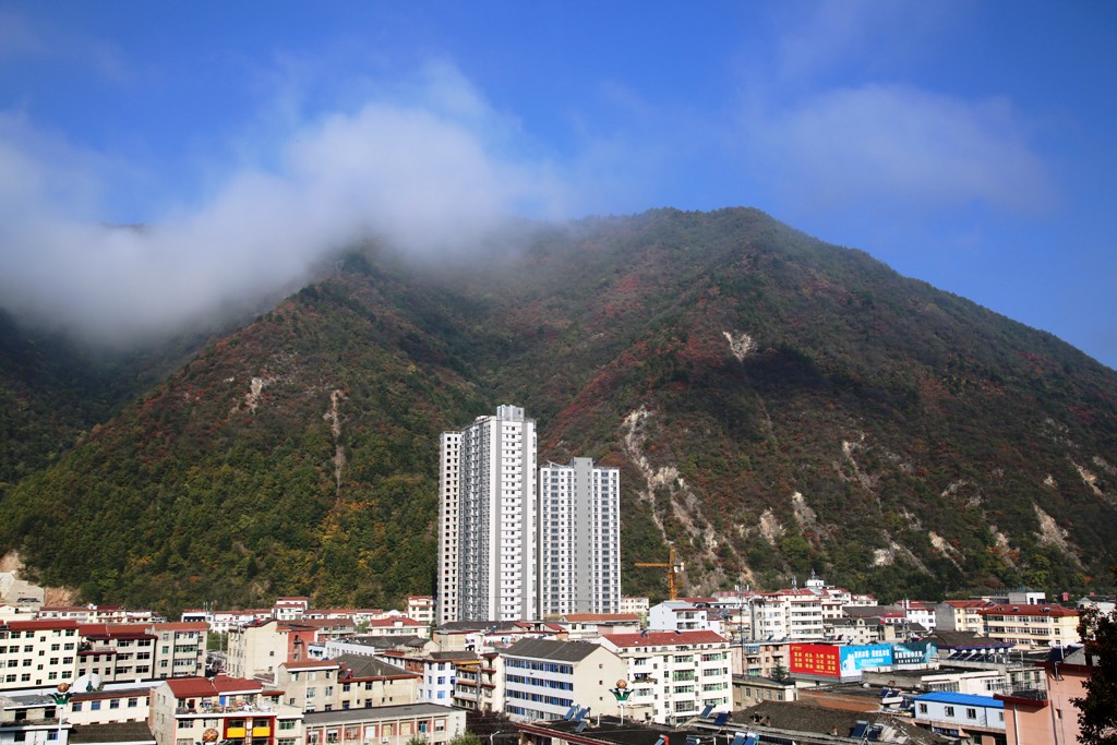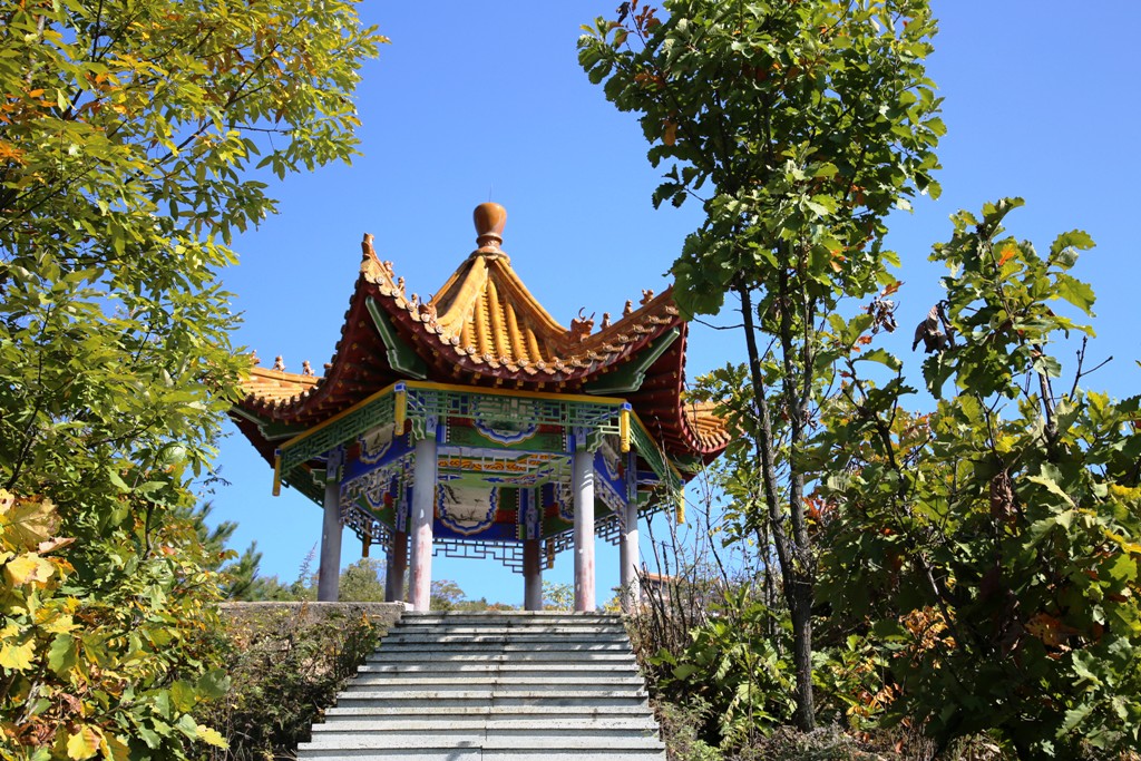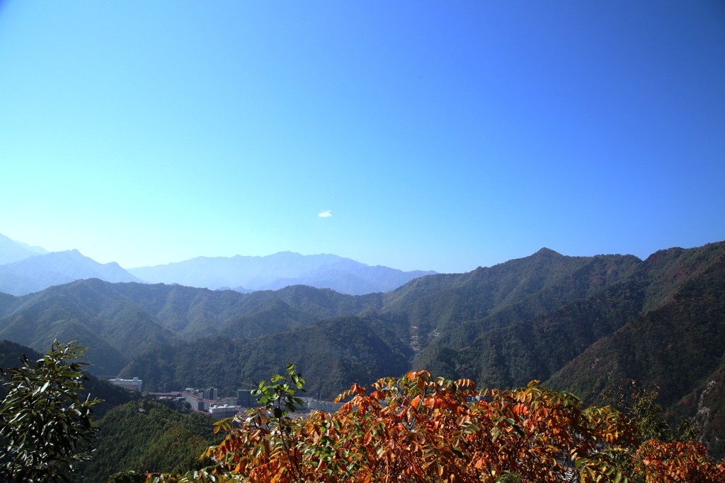 远处连连绵起伏的山峦,青一块,红一块,绿一块,就像山爷爷穿上了红红绿绿的花衣裳,再看,有了那亭子的衬托,秋天多美呀!天是蓝的,山是淡绿的,天山一色,站在高高的山上总有一种心旷神怡的感觉。秋天来了真好!