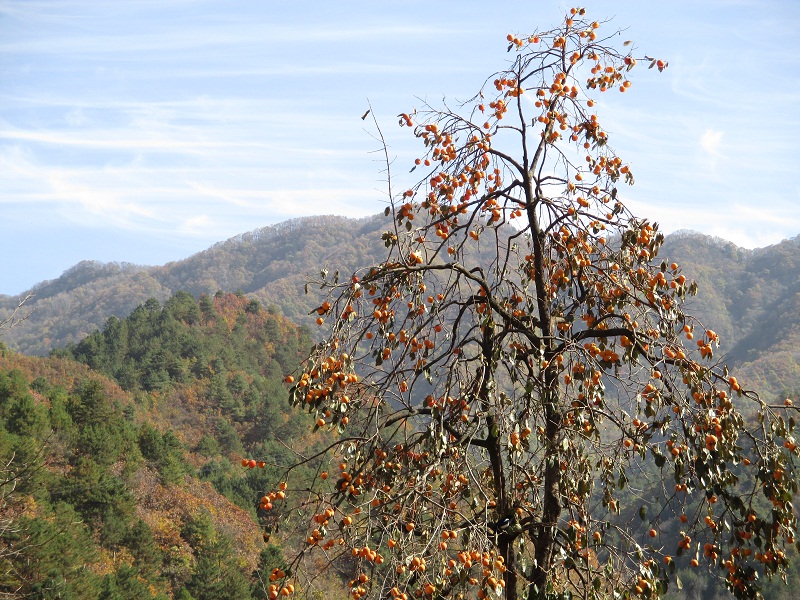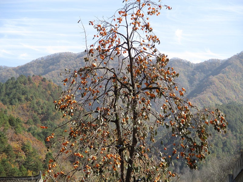 这些柿子有三种吃法:第一种是等它自然成熟再摘下来,那吃到嘴里,软绵绵,还很甜,特别好吃。第二种是它颜色是淡黄色的时候,还未成熟,就把它摘下来,挑出好的,和菜腌在一起,一个月以后就可以吃了,这吃起来和苹果差不多。最后一种就是它成熟后,把它摘下来,晒成柿子干,那也特别好吃。