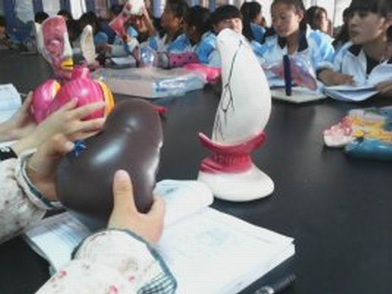 我们又拿到了什么心脏、肝、肺之类的模型,初次见到那些肝脏模型的我们,心里都肯定在想,原来人体的肝脏是这样的,所以同学们就在这个洞洞里抠抠,在那个洞洞里看看,大家都充满了新鲜感和好奇心。我们一边摸着模型一边听着老师的讲解,那真是一种美的享受。
