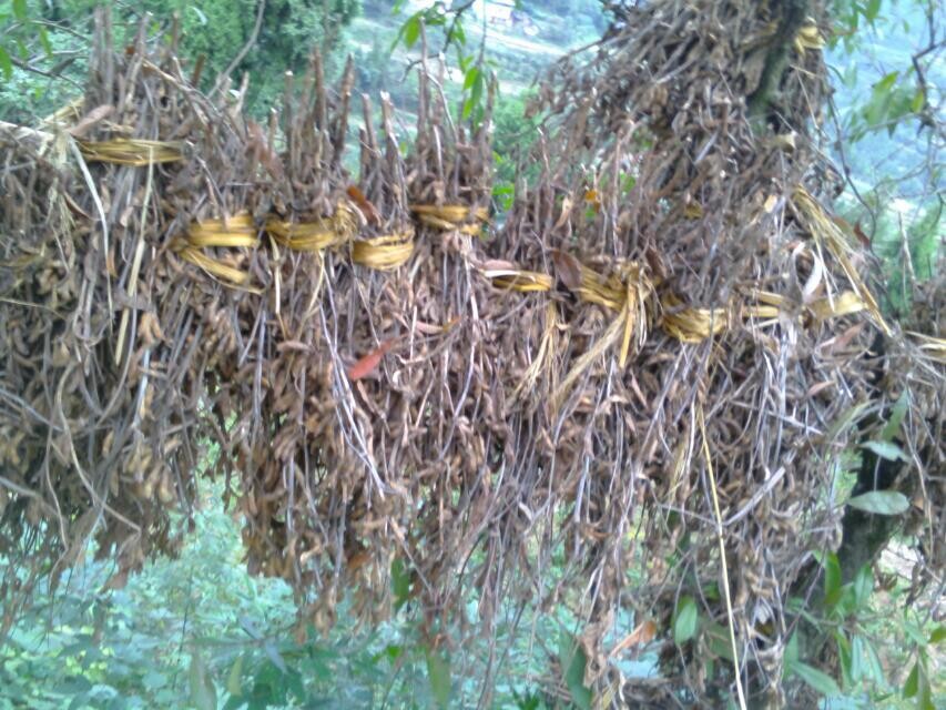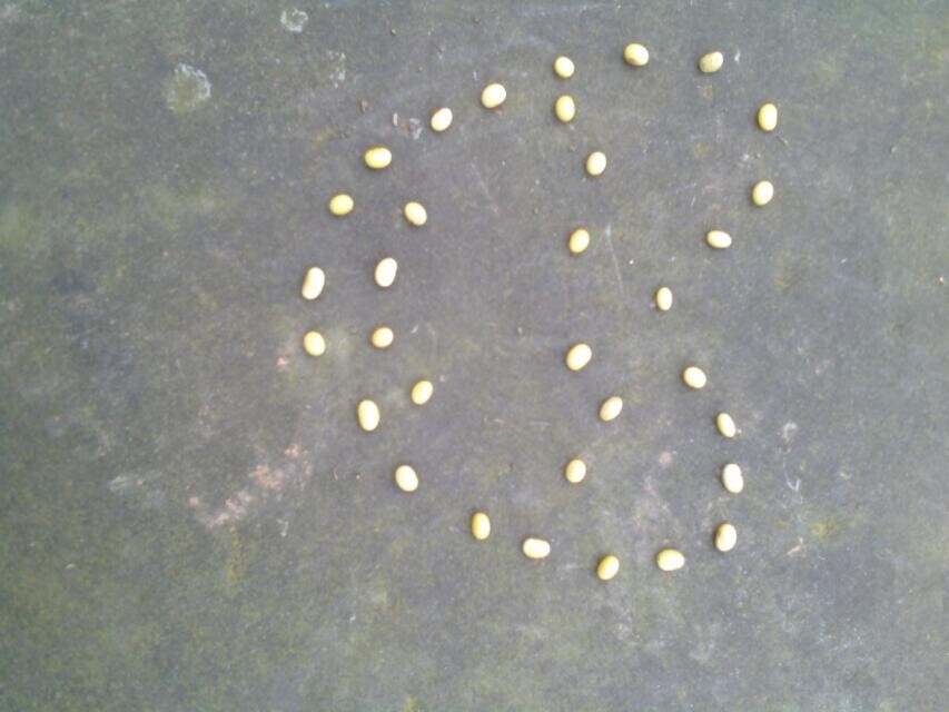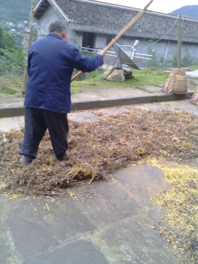 当风把黄豆吹的微干的时候,就是打黄豆的时候了,于是爷爷把它一把一把排在院坝里用农村的一种特有的工具来回的打,这样做的目的是把黄豆打散在地上,打完之后又可以放在灶前烧,这可真是一举两得呀!
