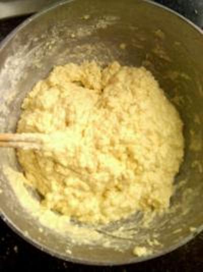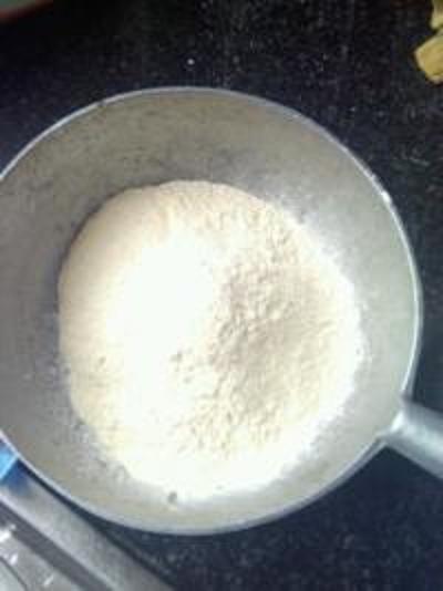 奶奶先是拿出来一袋玉米粉,又拿出舀水用的瓢,让我把玉米粉倒进了瓢中,加上水,奶奶给我示范怎样和面,然后就让我做。