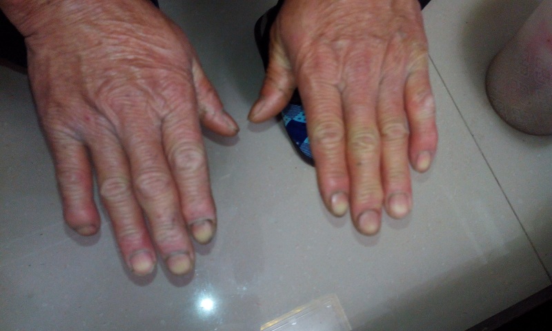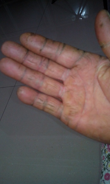 这双手,之所以这么粗糙,是因为这双手承担着家里太多事了。这双宽大的手是田野的伙伴,橘树的好帮手,庄稼的“纽带”……这双手辛苦工作完后回来,就立马套上衣服,穿上胶鞋,顺手抓起锄头往肩上一扛,头也不扭地朝田野走去。到了田野,这双手抡起锄头,举过头顶,向下用力一挖,再向后一扯,一大块坚硬的泥巴就仰面翻了过来。锄头在这双手上快节奏地翻飞着。不一会儿身后就挖了一大片。一颗颗汗珠落在手上,一颗,二颗,三颗……另一只手飞快擦去,又抡起锄头继续耕作。就这样一个下午过去了。我心中百感交集……