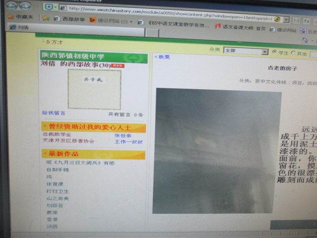 起初,西部故事这个项目对于我来说很陌生。只是听负责这个项目的老师讲,写西部故事,可以锻炼写作能力,提高写作水平,于是,我参加了西部故事这个项目,成为平台中的一员。