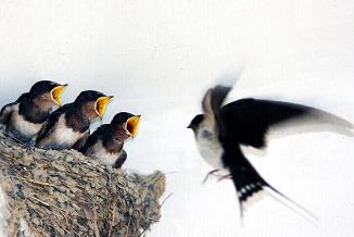 春天来了,在春天的呼叫下,双双对对的燕子,如梭似箭,从遥远的越冬地,返回它们繁育的老家。燕子的家,就在我家墙角上,里面还住着几只小燕子,老给我家拉屎,把我家里弄得很脏。