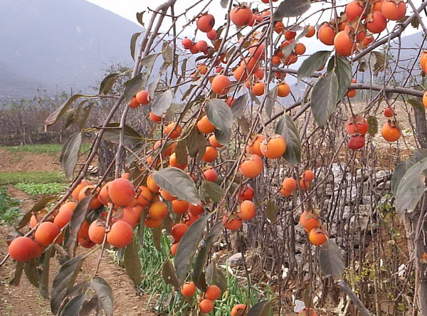 这里不光有柿子,还有山楂,柿子和山楂不一样,不是甜的而是酸的。成熟的山楂是红的圆圆的,差不多跟葡萄一样大。你们知道没有成熟的山楂是什么颜色的吗?是绿色的,,不但吃起来不酸,而且舌头还有些发涩,吃完后舌头也变成绿色的了。