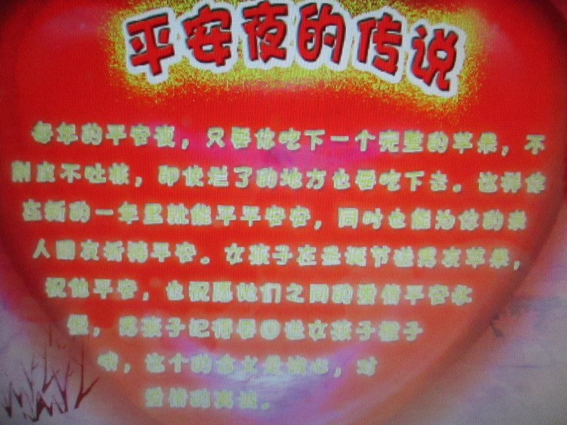 下午的时候,我把那四个全送给了我的一些好朋友,他们也各自给我送了一个平安果,平安夜可真有意思啊!