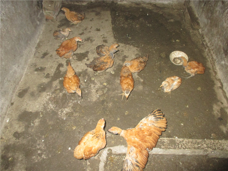 土鸡所居住的地方不像饲料鸡整天被困在一间大屋子里,而土鸡却恰恰相反,他们整天被“流放在外”。只要一天三顿给他们喂好,其余时间都是在坡上度过的,夜晚,他们会自觉地进入一个狭小的“房子”里,不需要任何人去管它们。它们“日出而作,日落而息”过着不受约束的生活。