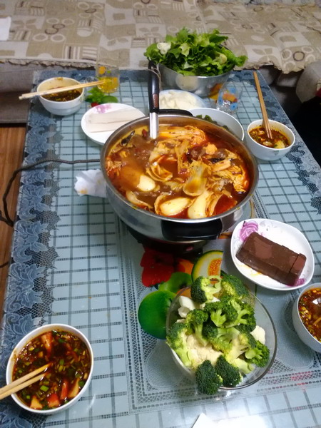 把菜买回家后,我们便一起开始洗菜,炒火锅底料,两个小时以后,所有的菜都被我们整整齐齐的摆在了餐桌上。妈妈下班回来看到这一幕,笑得合不拢嘴,我们就这样度过了一个快乐的夜晚。