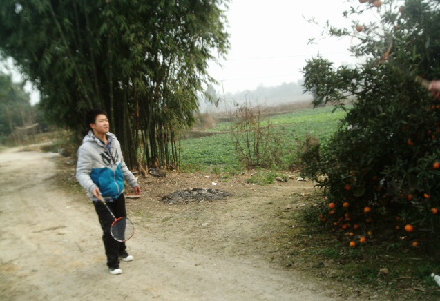 又回家了,今天是周六,现在已经入冬了,天气越来越冷了,有些时候早上还有霜,几个星期来,太阳也是偶尔露露脸。下午我写完了作业,正无聊,刚好我弟弟来找我玩,他说:“我们打羽毛球好不好?”我正愁怎么耍,说:“好!”