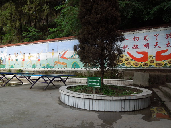 我们学校操场旁边的围墙也充满了,浓厚的文化气息。学校还有乒乓球台,我们学习之余还可在此切磋切磋“国球”的技术!我们在如此美丽的校园里,不仅在一天天长大,而且在一天一天成长!