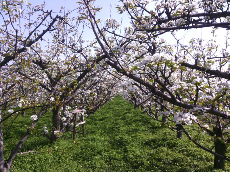 虽然已是下午,但梨花看起来还是那麽迷人,梨花依然不失那种品质。梨树下边有一些碌碌的小草,这更能衬托出梨花的雪白与高贵。