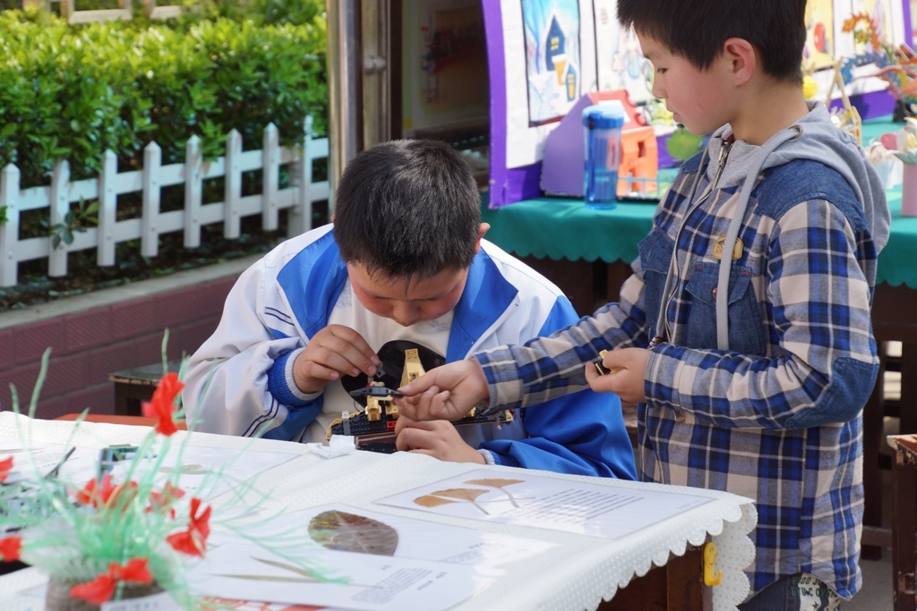 每个人的脸上洋溢着快乐的笑容,看着玲琅满目的艺术作品,我彻底陶醉了:一朵花.一片叶.一个房子.一个秋千.一个小艺术做品,都是同学们辛勤的劳作,我的脑海浮现出一个又一个的画面,这些是同学们的艺术结晶,我向你们致敬!