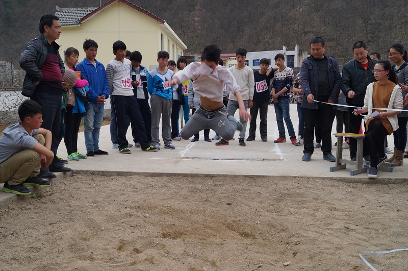第二次我跳了三米多,成绩不理想,但比有些运动员的成绩好。却比不过初三的几名同学。