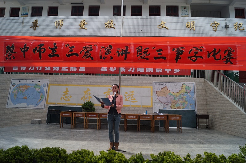 首先进行的是教师“三爱”演讲比赛,所谓”三爱“,即爱学习,爱劳动,爱祖国,老师们那声情并茂的演讲,拨动着我们的心弦,让我们更深层次的理解了”三爱“的含义,一场轰轰烈烈的”三爱“演讲比赛就在同学们热烈的掌声中落下了帷幕。