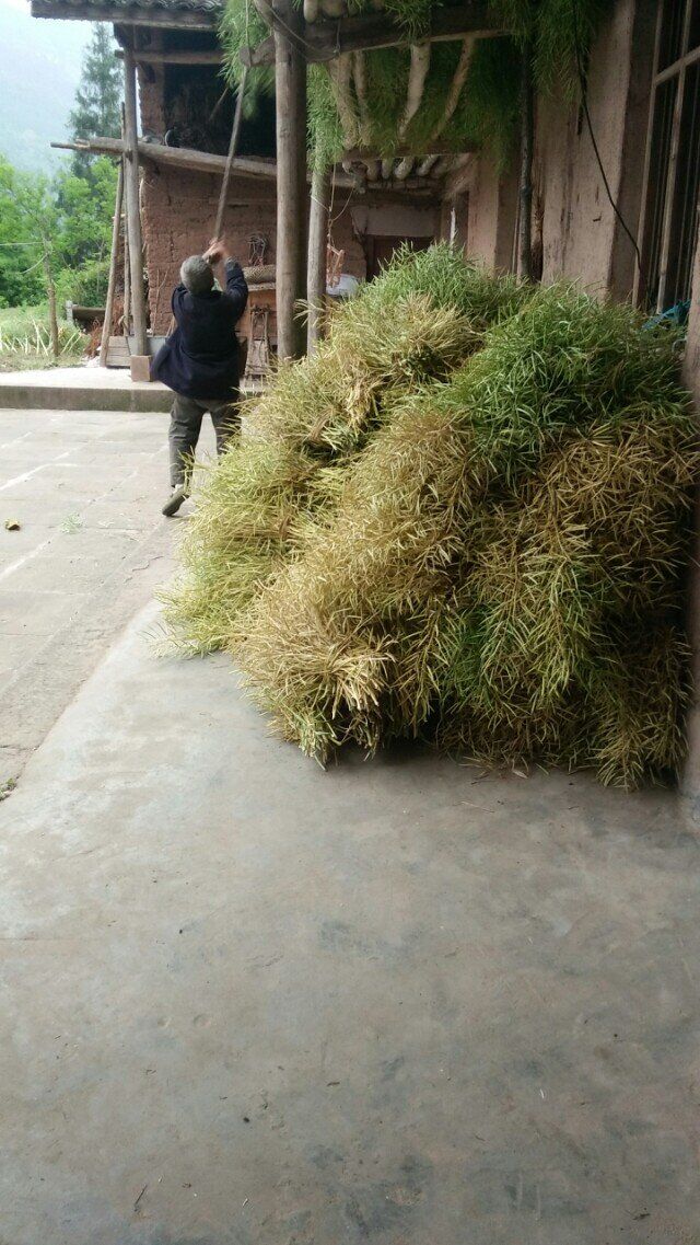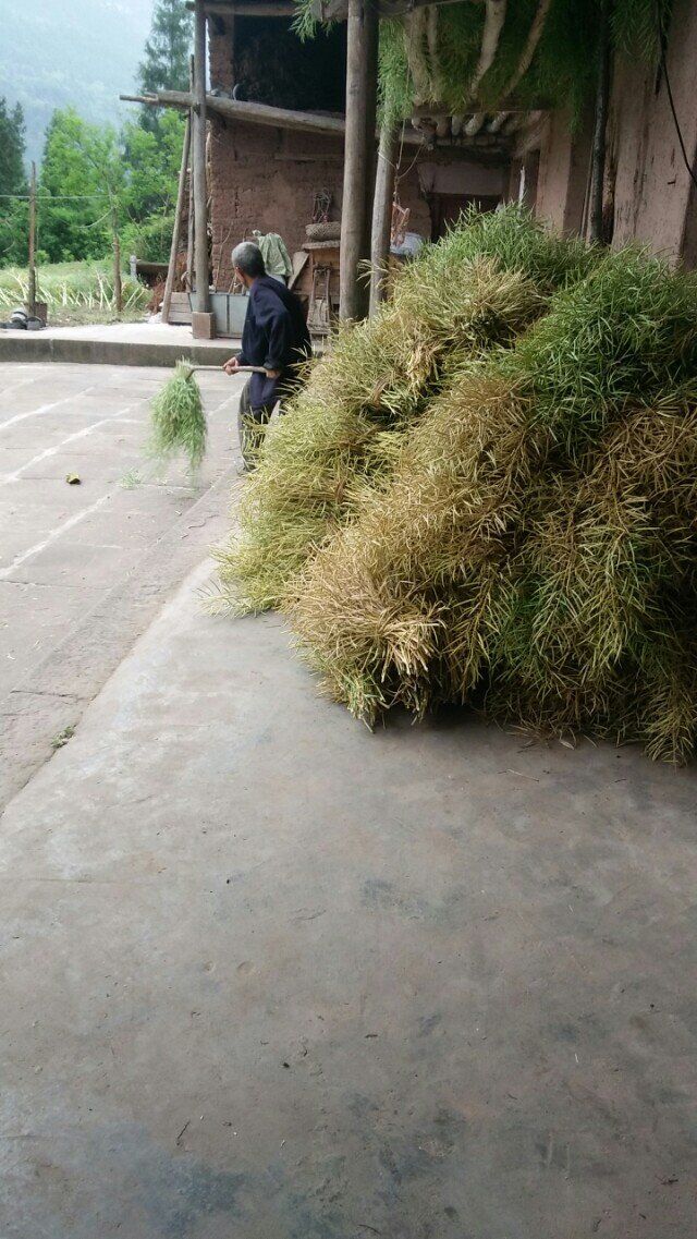 在前一个月还是一片青绿,这个月刚回来就看到了堆满路道的饱满的金灿灿的一捆捆菜籽。