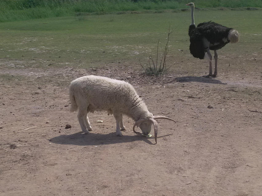 出了人类生活的山洞之后,我和舅舅两个人去看了野生的动物-山羚羊和鸵鸟,由于草还没有完全的长出来,全靠人工来喂养,由于离得远,我没有看清鸵鸟的样子,它也好像个调皮的孩子故意躲着我们似得,听一行的人说以前没有对动物的重视,造成人类对动物的乱杀乱捕,近些年来,由于被确定为遗址,所以这些动物才得以生存下来……