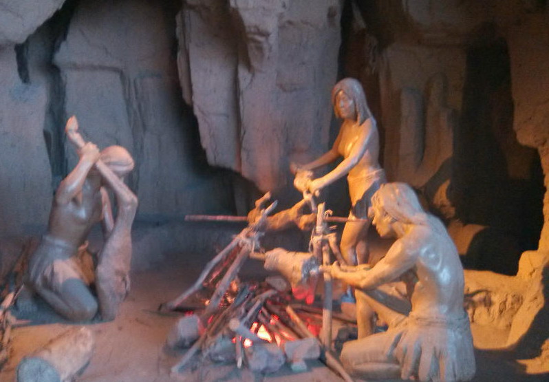 进入第一个洞,是介绍以前人们的生活方式的,在进去之前有一条很黝黑的小路,要不是舅舅在前面带路,我可能被吓哭了,我拉着舅舅的手紧紧的,他还笑着说原来才知道我的胆子是如此的小。看着以前的一幕幕,我想起来历史所学的关于原始社会的生存方式,自生自力,钻木取火,可见当时的人是多么的聪明,虽然交通条件不便,虽然没有合适的衣服,但是他们懂得合作……