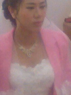 再看看新娘子,真的很漂亮,穿着婚纱,好像一个天使,她应该很开心吧!脸上挂着浅浅的微笑。