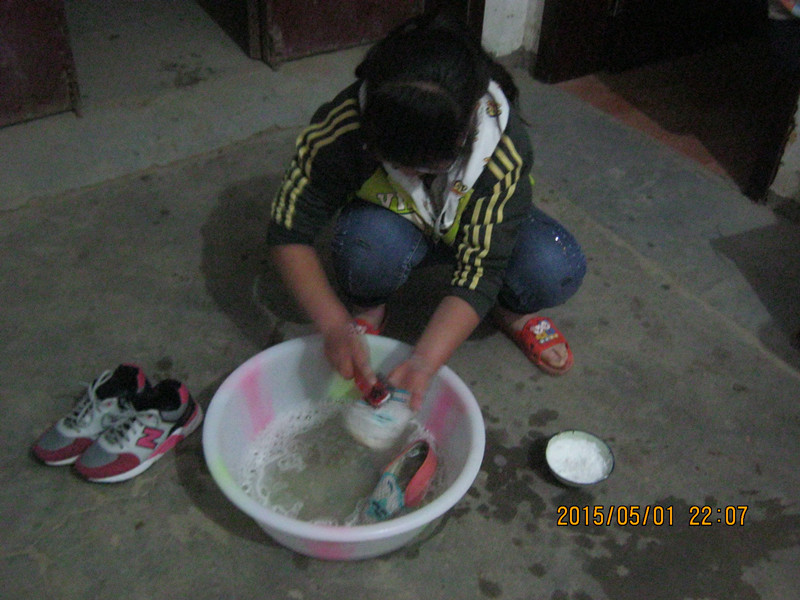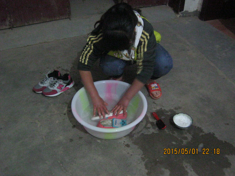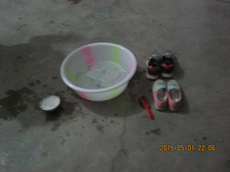 “五一”假期,大多数人都选择了去某个景点游玩。而我则不然,我以劳动体会“五一”的真正意义。今天我早早起床,接了一盆水,拿出洗衣粉和鞋刷子,决定把我的几双运动鞋洗干净。
