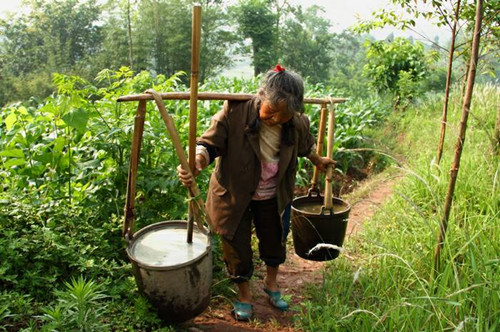 担粪,是农村的重苦力活之一。它既考验人的体力大小,也考验人的平衡力。