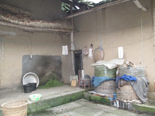 我家是土墙房子。很狭小,但是我家四周风景很好,生活在这儿我很开心。