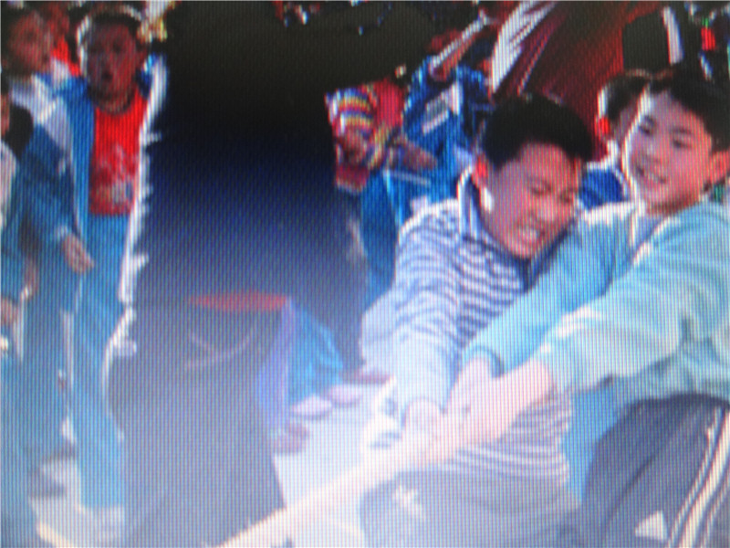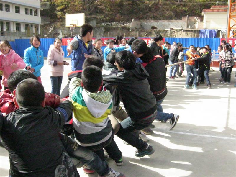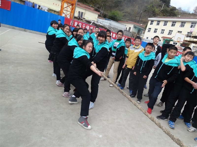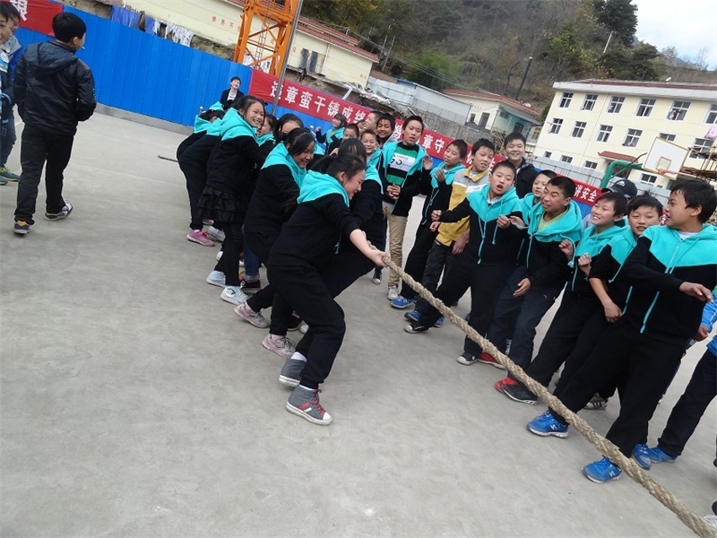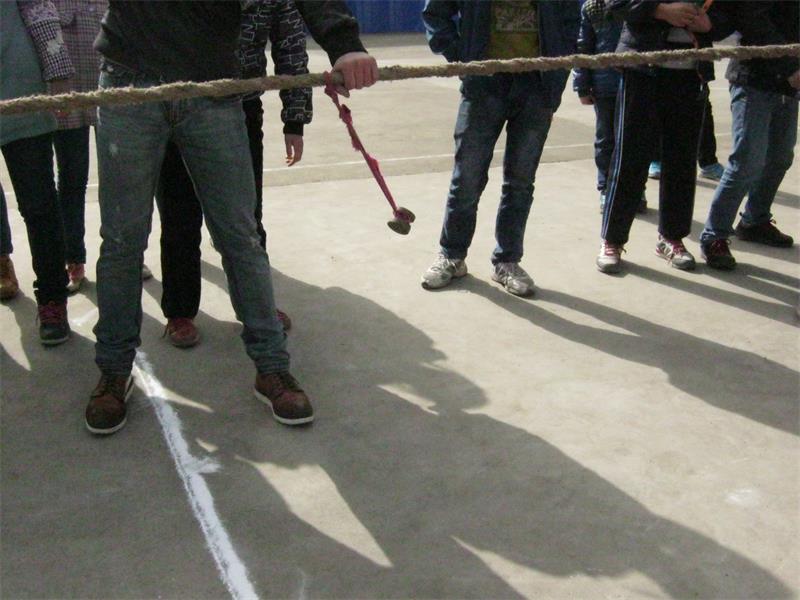 不知过了几分钟,我们有降低了重心,紧握住绳子,慢慢向后移动着,“加油”声更加响亮了,我们两个班都在向后拉着,三班劳力粗,我们处下风,但是,却感到对方放松了许多。“哎….呀”我们班倒在了地上,本以为我们班赢了。绳子断了!他们叫喊着,劳力太粗了,这么粗的绳子尽然能拉断。太不可思议了!我们班伤得很惨!太阳已经落山了,一场比赛终止了,各自回到教师诉说心中的“怨”。