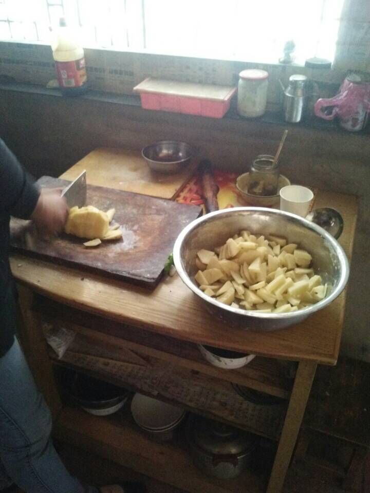 首先,将洋芋切成糊状,再放进锅里煮,也可以在里面放些菜,这样味道更好,煮熟后,伴着馍喝着洋芋糊糊感觉好幸福。