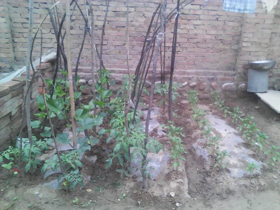 我家院子里种了一些家常菜,供我家夏季时吃。是我妈妈和我奶奶栽种的,有西红柿,黄瓜和我家乡的辣椒等。这些菜可是长得极好的,因为栽种在我家院子里,家人闲余之时,便会去浇水,看长高时便会给西红柿和黄瓜插杆杆,就是插一个杆子使西红柿和黄瓜长高时可以靠着杆子长。我家的西红柿和黄瓜已经开出黄花了,而且小黄瓜也长出来了,只是很小,等到收割麦子的时候就可以吃了。