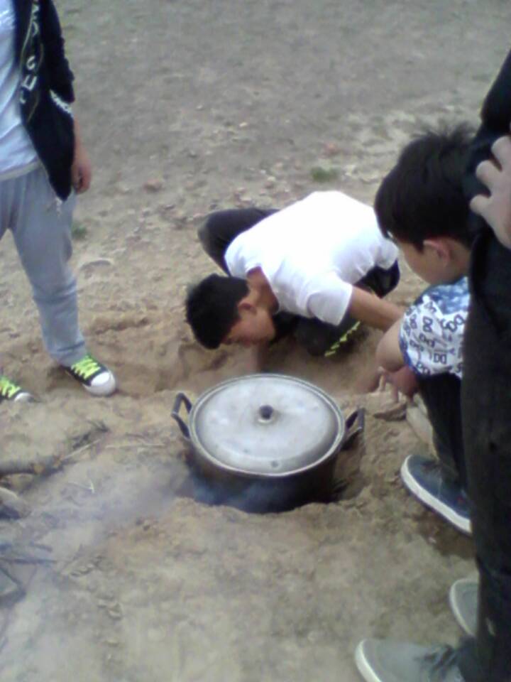 人多力量大,没过多长时间,第一锅就好了。与其说是火锅,还不如说是一锅乱炖。尽管看起来不怎么样,但毕竟是我们自己做的,所以那些食物分分钟就被解决了。如果野炊只是大家坐在一起吃个饭就没意思了,当然,真正的疯狂才刚开始。