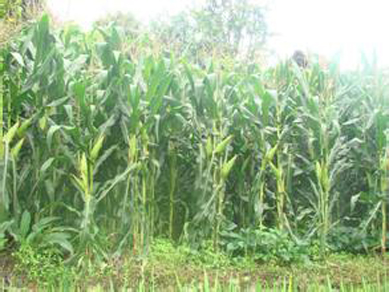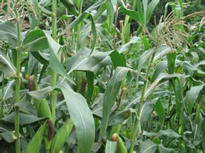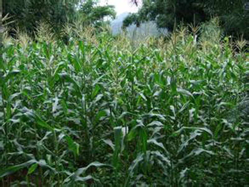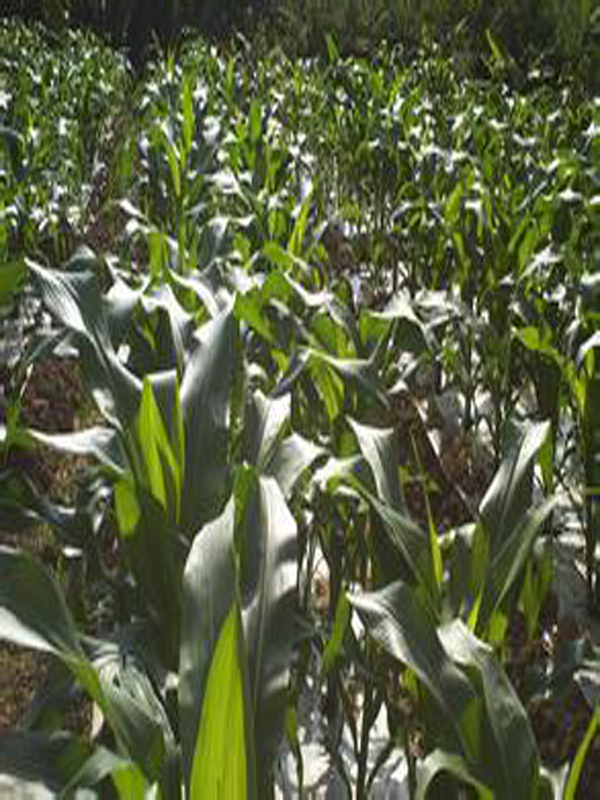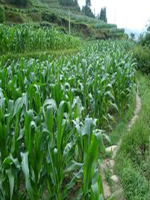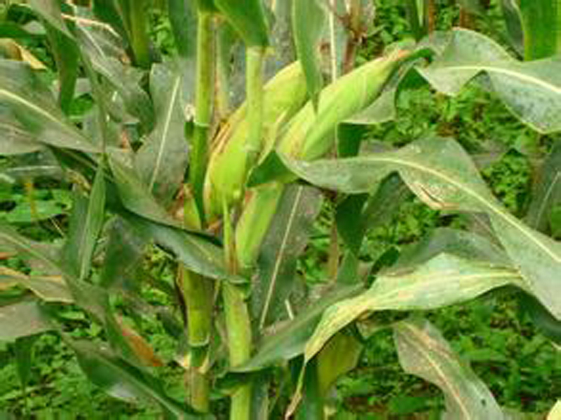 春天,在田里播上饱满的包谷种,在春天甘露的铺有下,包谷发了芽,长出一片片绿色叶子,不出一个月,包谷苗便有半人高了,粗壮的包谷杆在雨露的滋润下,显得在精神上。长长的叶子像绿色的带子样。在微风的吹拂下,偏偏起舞。