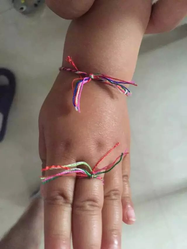 这个是父母用五颜六色的绳子编制的花绳,夏天到了这个蚊子动物都会出现,由于我们家是在农村每年的这个时候都要去田地,当然会遇到蛇,据老一辈的爷爷奶奶介绍,在五月五这天带上花绳,这样即使碰见了蛇,蛇也会避开人走的,还有就是要在小孩子的耳朵里面喷洒雄黄,这样小虫子就飞不进去了……